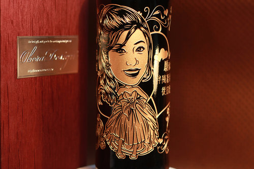 [歐柏拉酒瓶雕刻] 送韓國明星的酒雕 歐柏拉酒瓶雕刻設計
